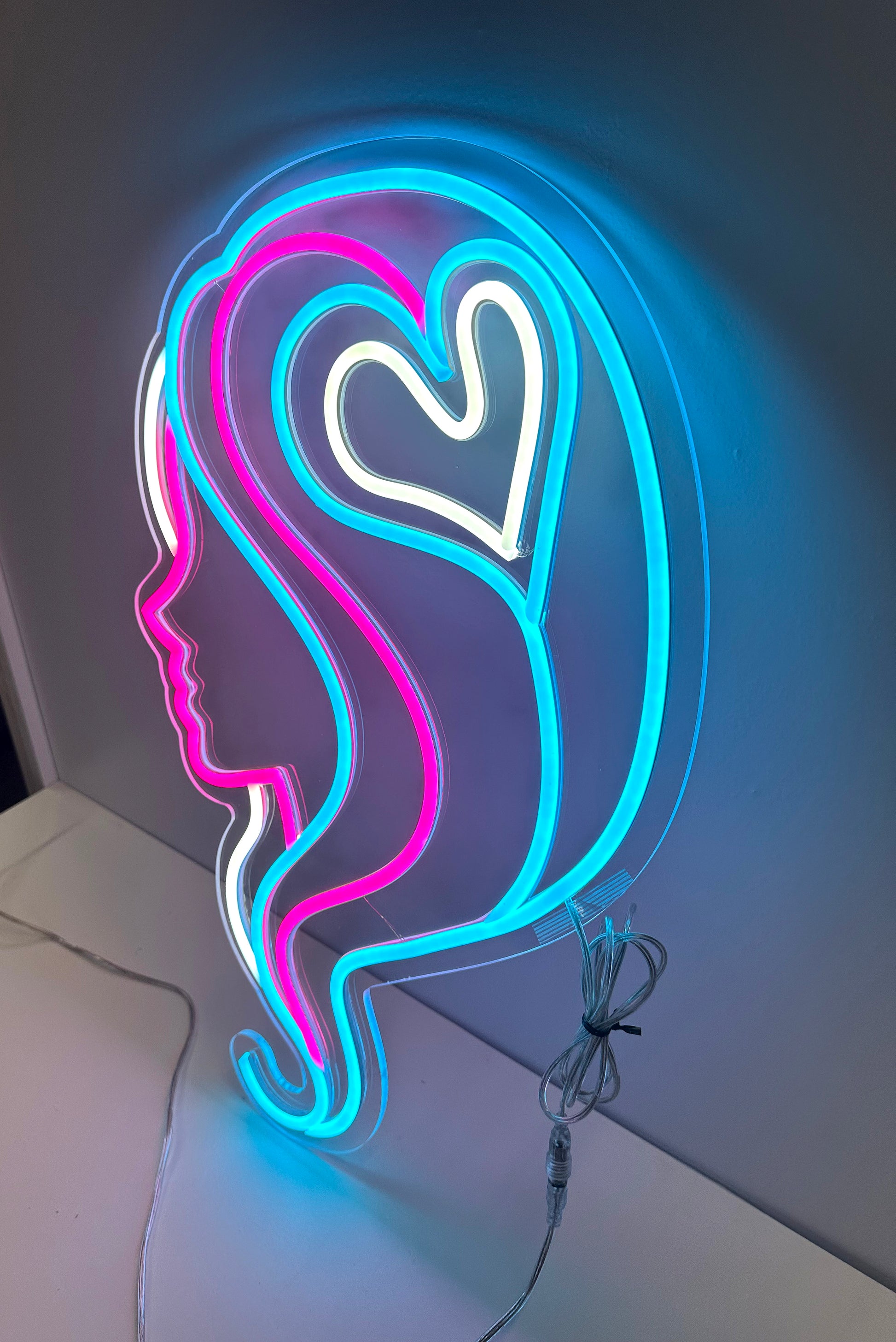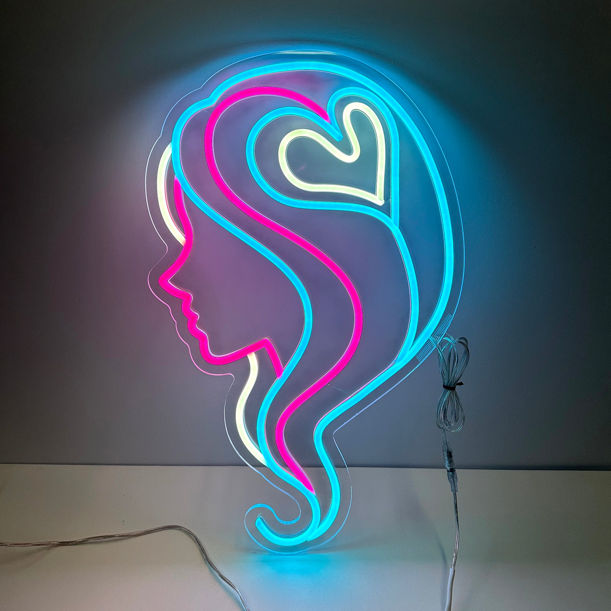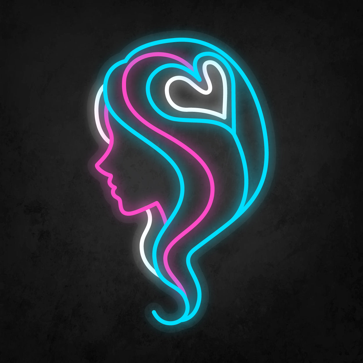 LED Neon Sign - Hair Salon Women Face Side View